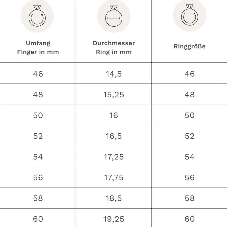 Es ist jedoch wichtig, zu beachten, dass die Ringgröße je nach Breite und Stil des Rings variieren kann. Daher ist es ratsam, die Größe von einem Fachmann überprüfen zu lassen, besonders wenn man einen besonderen Ring wie einen Verlobungsring kauft.