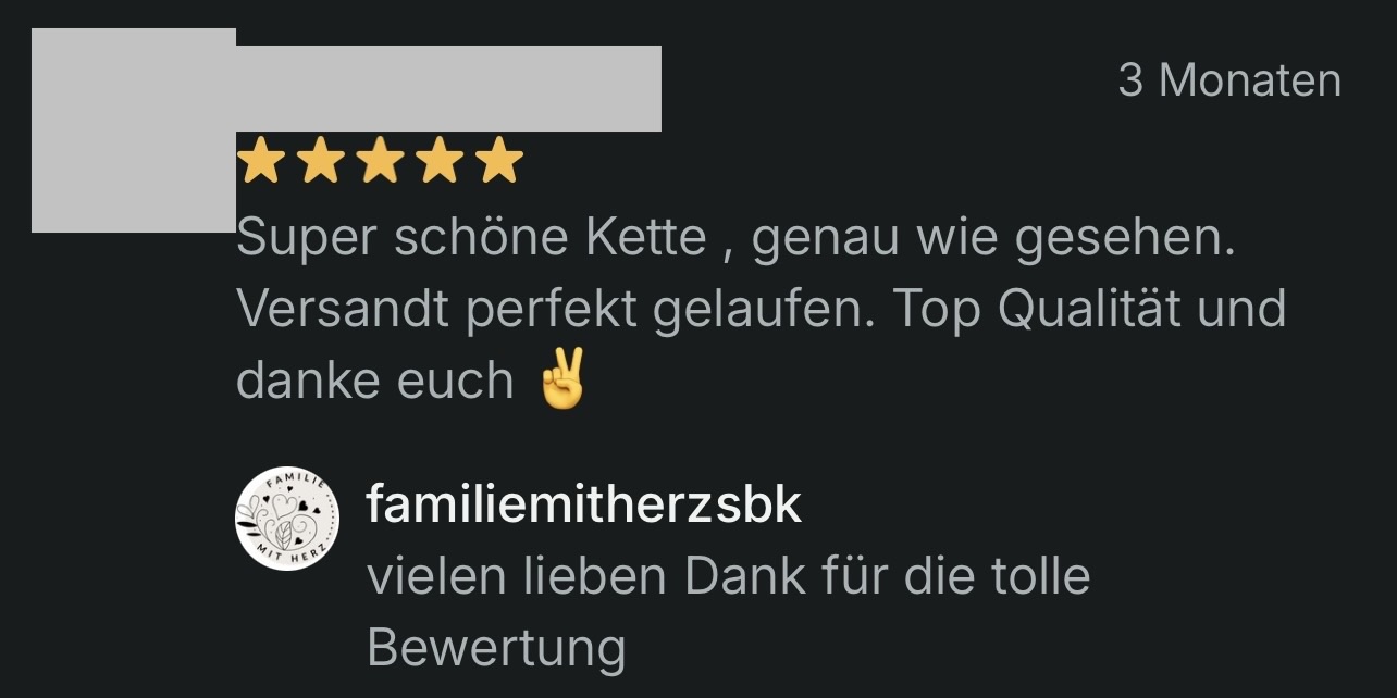 Familie mit Herz ist nicht nur ein Name, sondern ein Gefühl. Wir sind leidenschaftlich daran interessiert, einzigartige Schmuckstücke und Accessoires zu kreieren, die den Alltag verschönern. Unser Ziel ist es, jedem Kunden das Gefühl zu geben, etwas Besonderes zu besitzen.